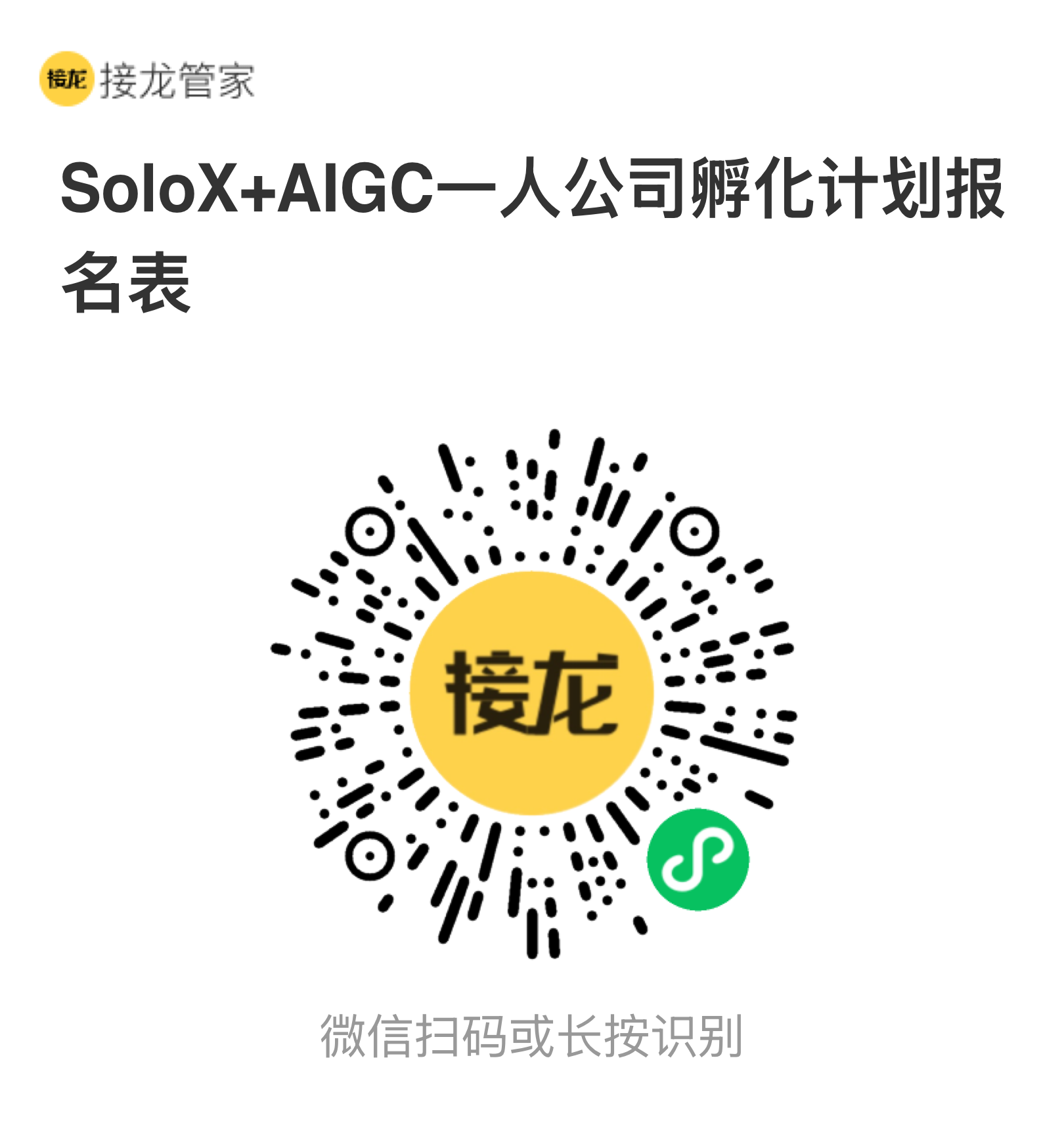 1. SoloX+AIGC一人公司孵化计划报名表;(见附件)